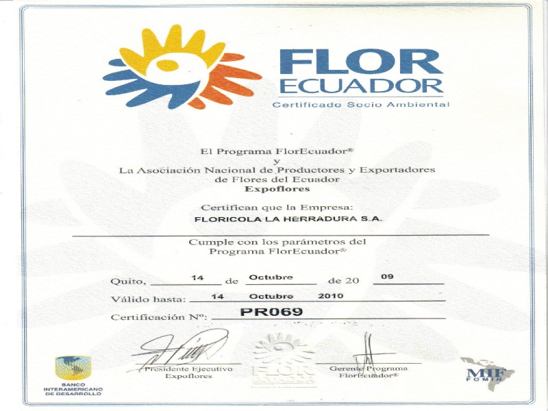 FlorEcuador® es el Certificado Socio – Ambiental de Expoflores; programa de autogestión que busca alcanzar el cumplimiento de normas sociales y ambientales en fincas florícolas de Ecuador.